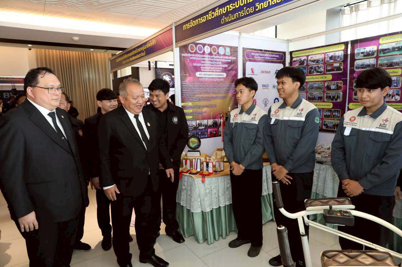 ขณะที่ สำนักงานคณะกรรมการการอาชีวศึกษา (สอศ.) มุ่งเน้นการดำเนินงานในด้านการผลิตกำลังคนคุณภาพ (Quality Manpower Production) โดยการคัดเลือกและจัดส่งนักเรียน นักศึกษา รวมถึงบุคลากรเข้ารับการฝึกอบรมและปฏิบัติงานในสถานประกอบการตามเกณฑ์มาตรฐานสมรรถนะวิชาชีพ การสนับสนุนทรัพยากรทางการศึกษา ด้วยการจัดเตรียมบุคลากร สถานที่ และเครื่องมืออุปกรณ์ในสถาบันการศึกษาเพื่อรองรับการดำเนินกิจกรรมภายใต้บันทึกความเข้าใจให้เกิดประสิทธิภาพสูงสุด และการยกระดับมาตรฐานฝีมือแรงงาน การนำองค์ความรู้เชิงเทคนิคจากภาคอุตสาหกรรมมาต่อยอดเพื่อผลิต “สมาร์ทเลเบอร์” (Smart Labor) ที่มีความพร้อมในการเข้าสู่ตลาดแรงงานในระดับสากล