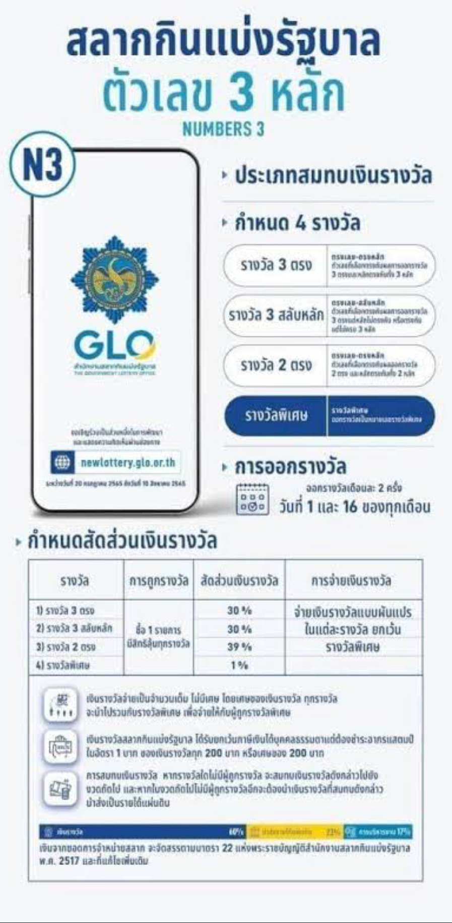 พันโท หนุน ศันสนาคม ผู้อำนวยการสำนักงานสลากกินแบ่งรัฐบาล เปิดเผยว่า สำนักงานสลากฯ พร้อมจำหน่ายสลากกินแบ่งรัฐบาลตัวเลขสามหลัก (สลาก N3) โดยจะทดสอบในระบบแซนด์บ็อกซ์ ระยะที่ 2 ผ่านตัวแทนจำหน่ายเป็นครั้งแรก ในรูปแบบ Soft Launch ตั้งแต่งวดวันที่ 16 มีนาคม 2568 หรือ เริ่มจำหน่าย 2 มีนาคม 2568 เป็นต้นไป ทั้งนี้ จะจำหน่ายผ่าน “ตัวแทนจำหน่าย” ใน 2 กลุ่มแรก คือ 1.ตัวแทนโครงการสลาก 80 จำนวน 819 ราย และ 2.ตัวแทนผู้พิการที่เป็นตัวแทนจำหน่ายสลาก L6 ดิจิทัล จำนวน 986 ราย รวมจำนวน 1,805 ราย ทั่วประเทศ